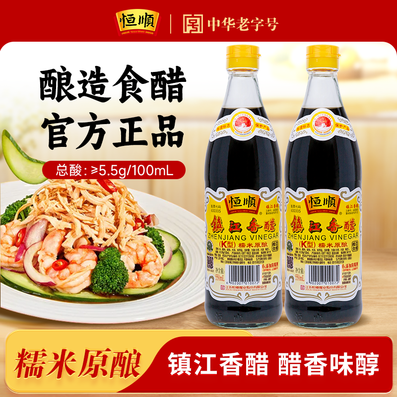 恒顺镇江香醋K型550ml正宗纯粮酿造饺子醋炒菜凉拌调味香醋