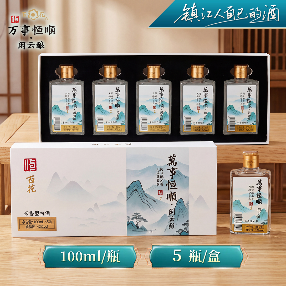 恒顺百花新品,镇江人自己的白酒,42%vol 米香型,100ml*5 瓶