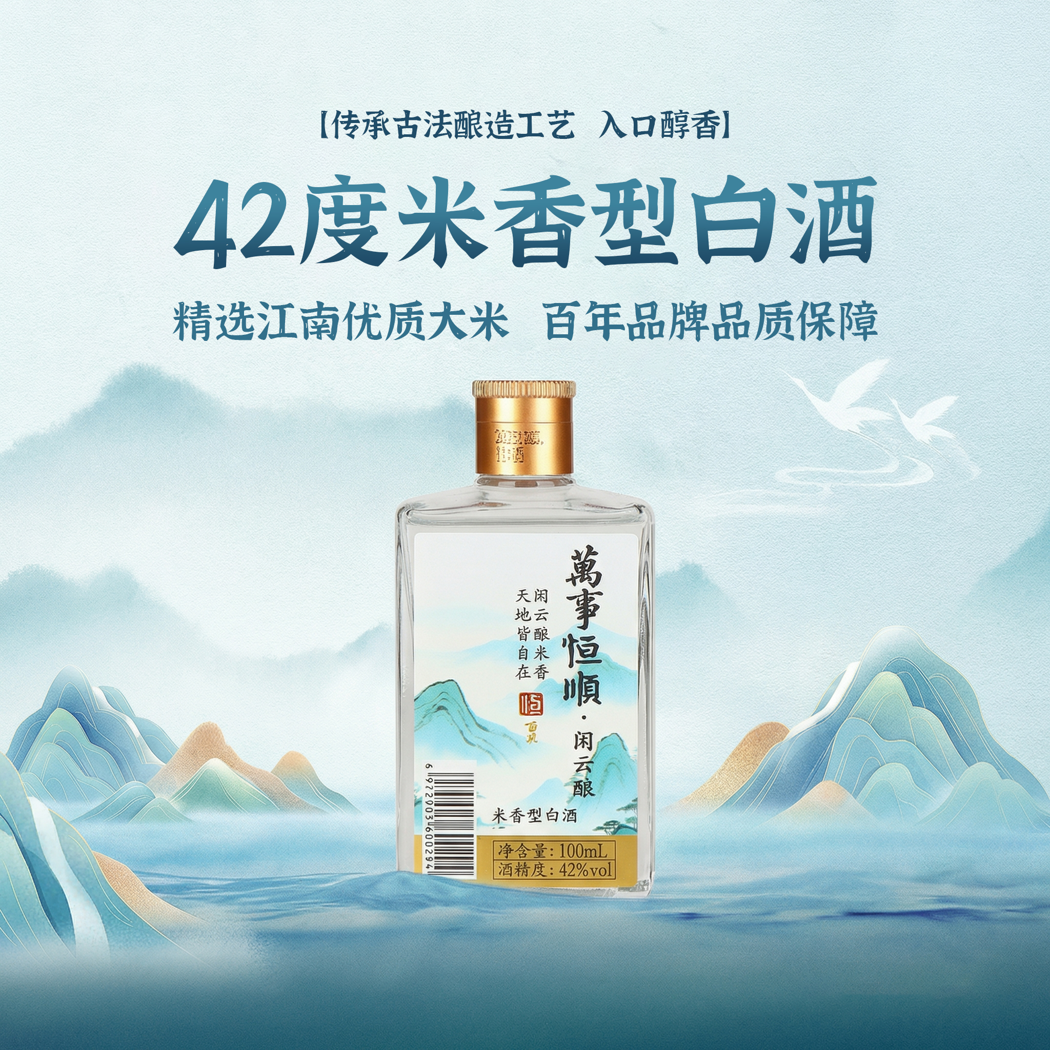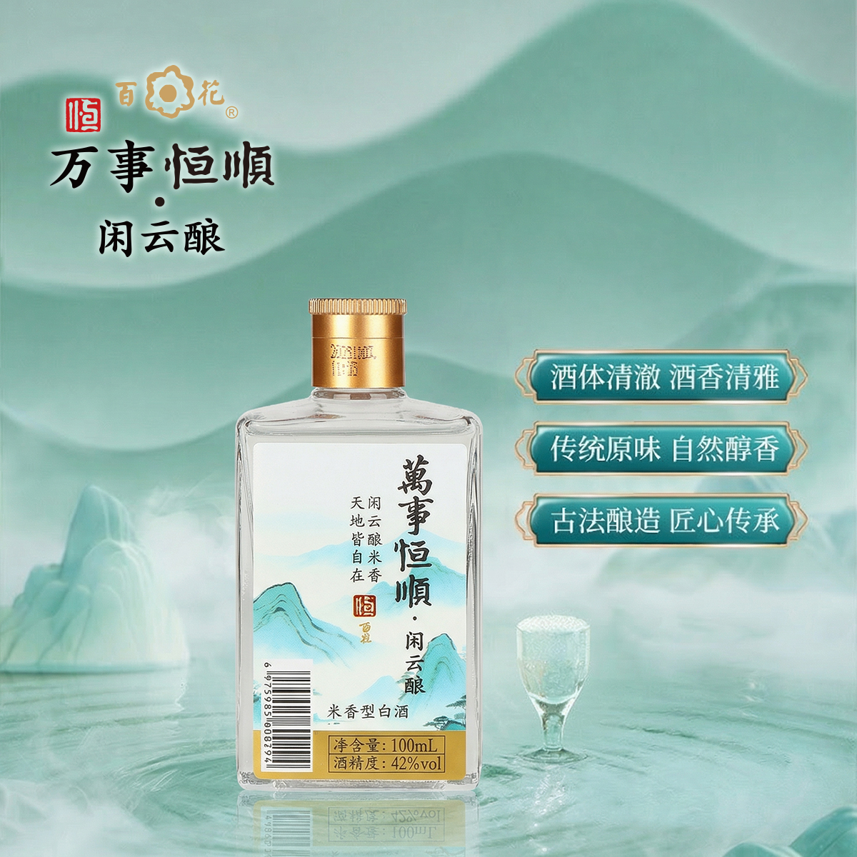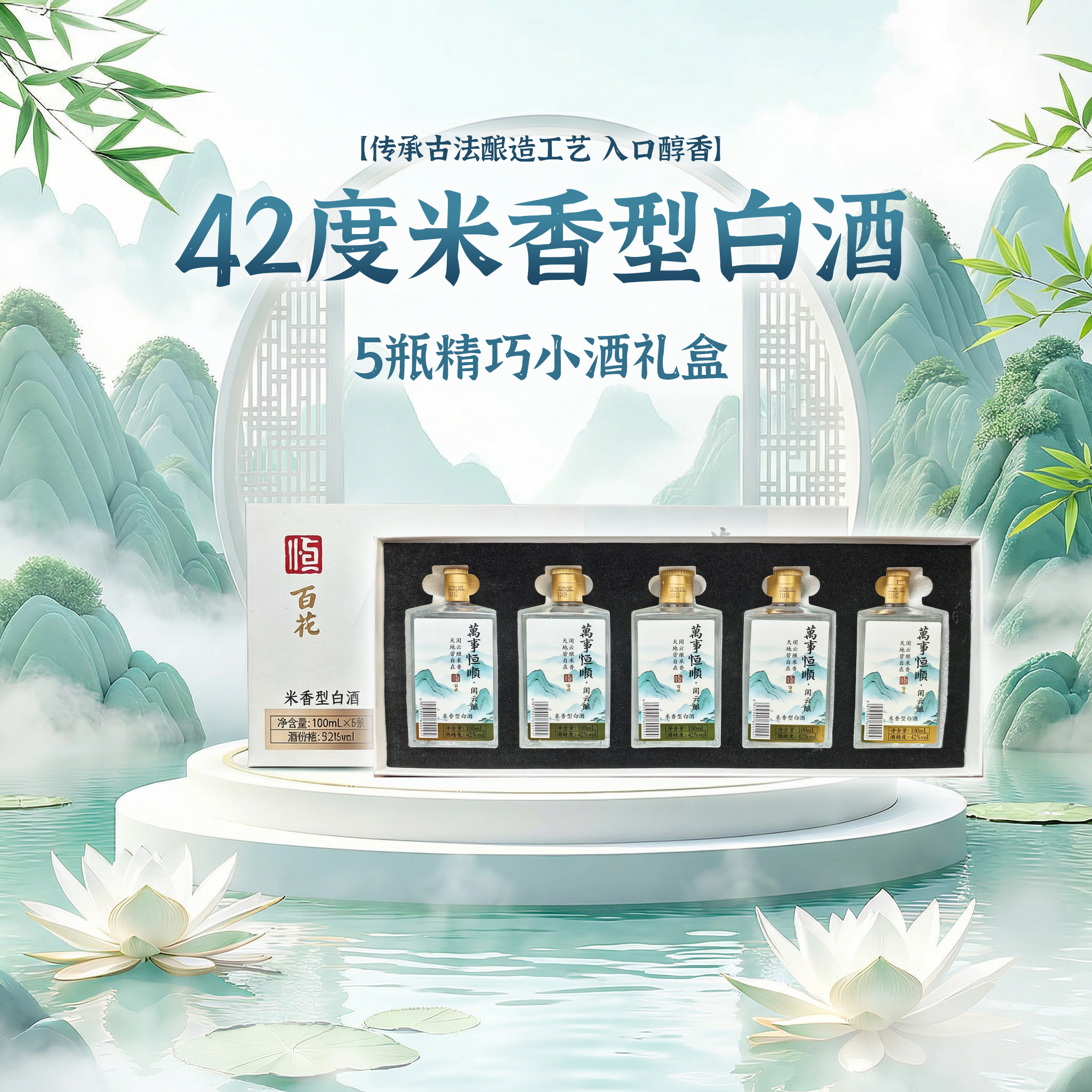 恒顺百花 万事恒顺·闲云酿 42%vol 米香型白酒100ml*5 瓶/礼盒
