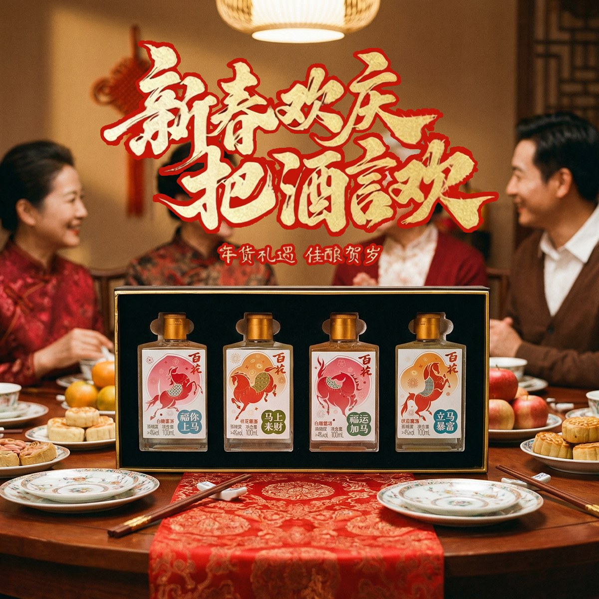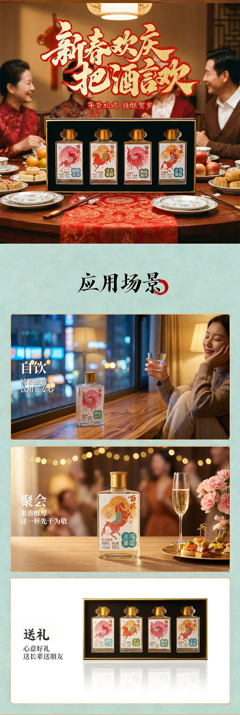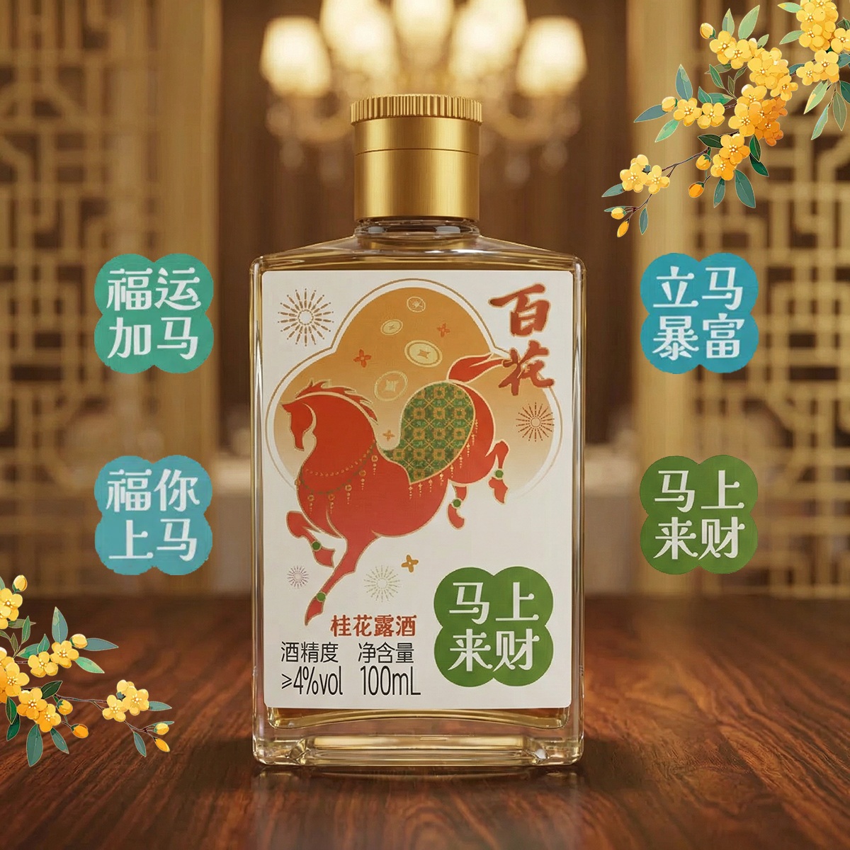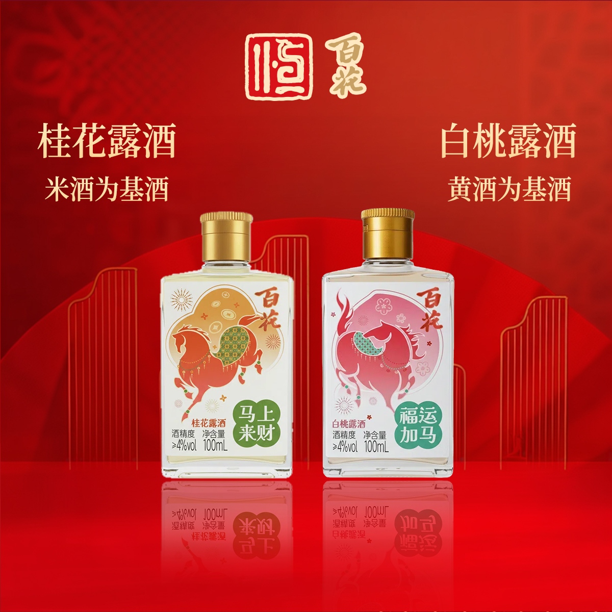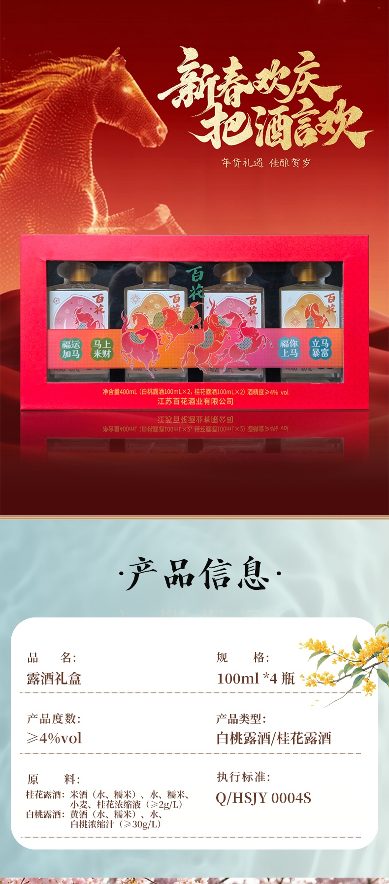 恒顺新品 百花酒 马年限量露酒礼盒白桃桂花露酒双口味100ml*4瓶