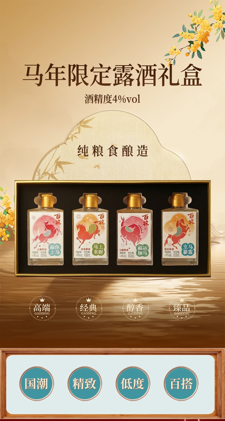 恒顺 百花酒 马年限量露酒礼盒白桃桂花露酒双口味100ml*4瓶