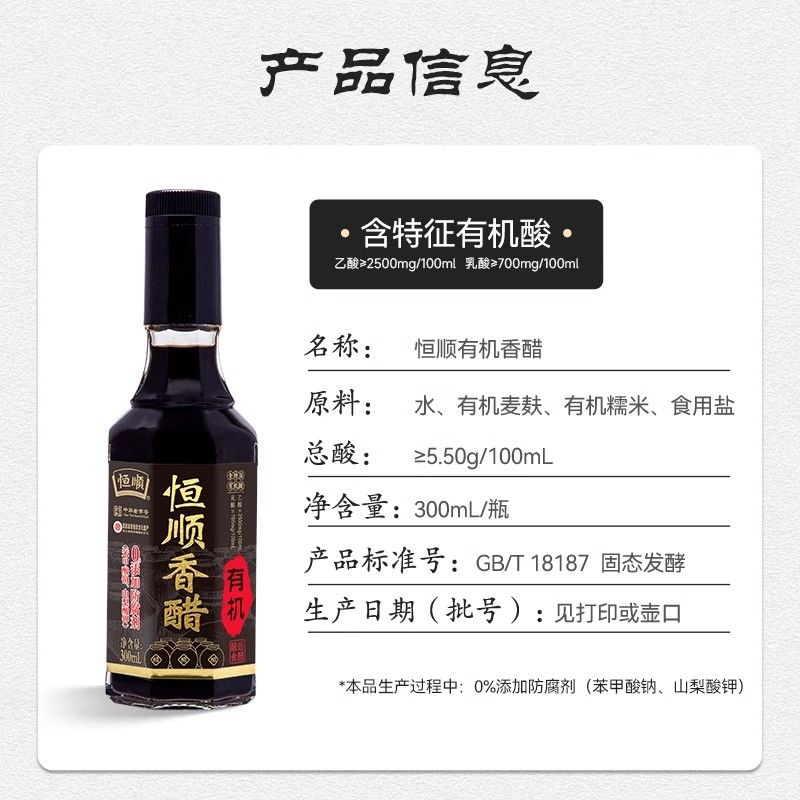 恒顺有机恒顺香醋300ml有机粮食酿造食醋饺子凉拌蘸食醋镇江特产